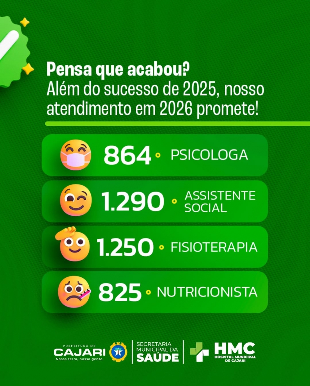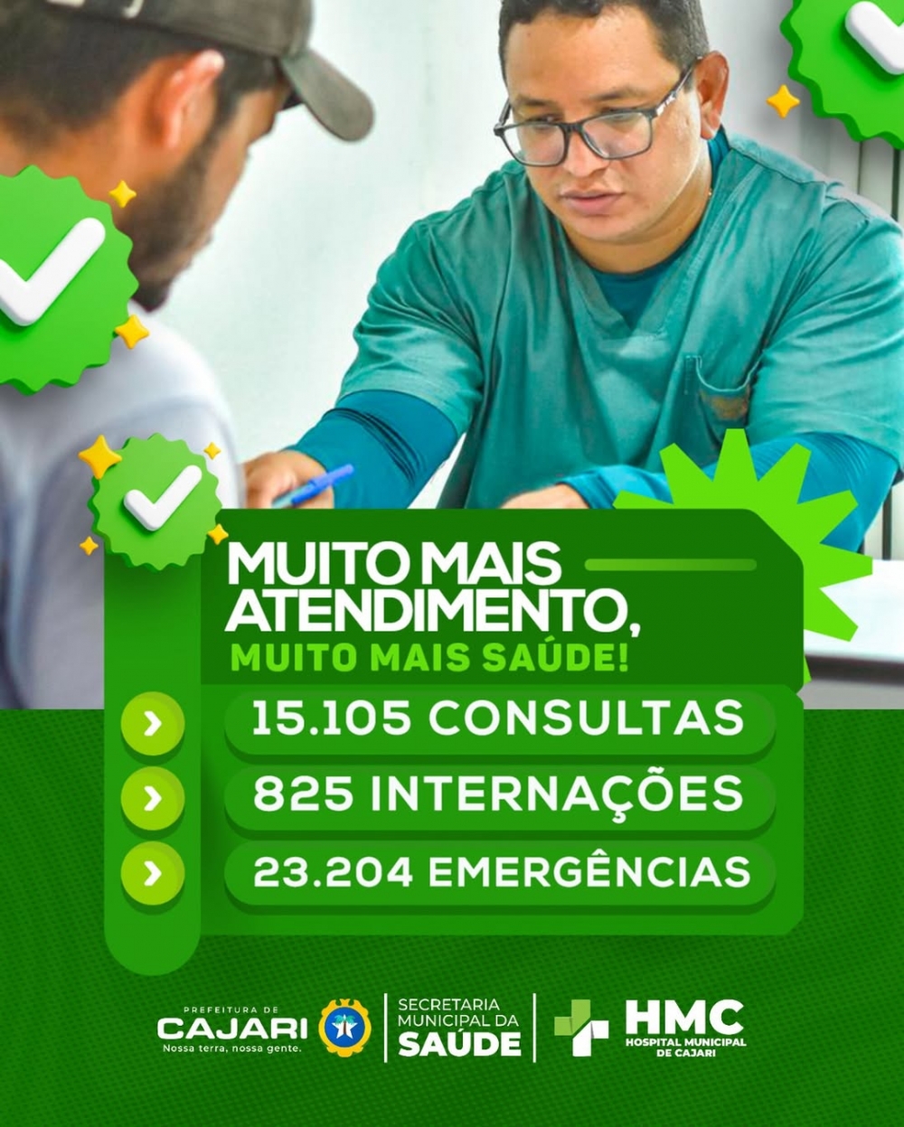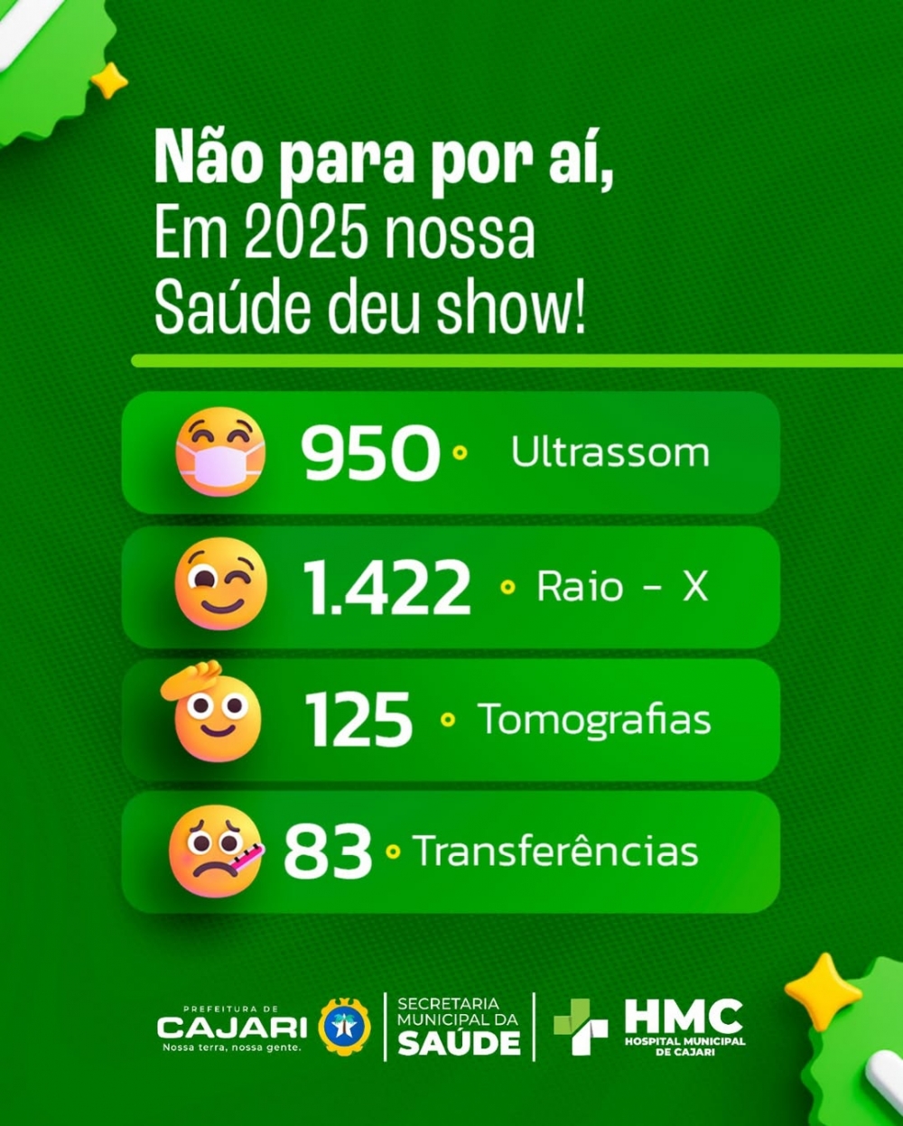 Em 2025, o Hospital Municipal de Cajari alcançou números recordes de atendimentos, refletindo o compromisso com o cuidado, a dedicação das equipes e os investimentos realizados pela Secretaria Municipal da Saúde de Cajari e pela Prefeitura de Cajari.